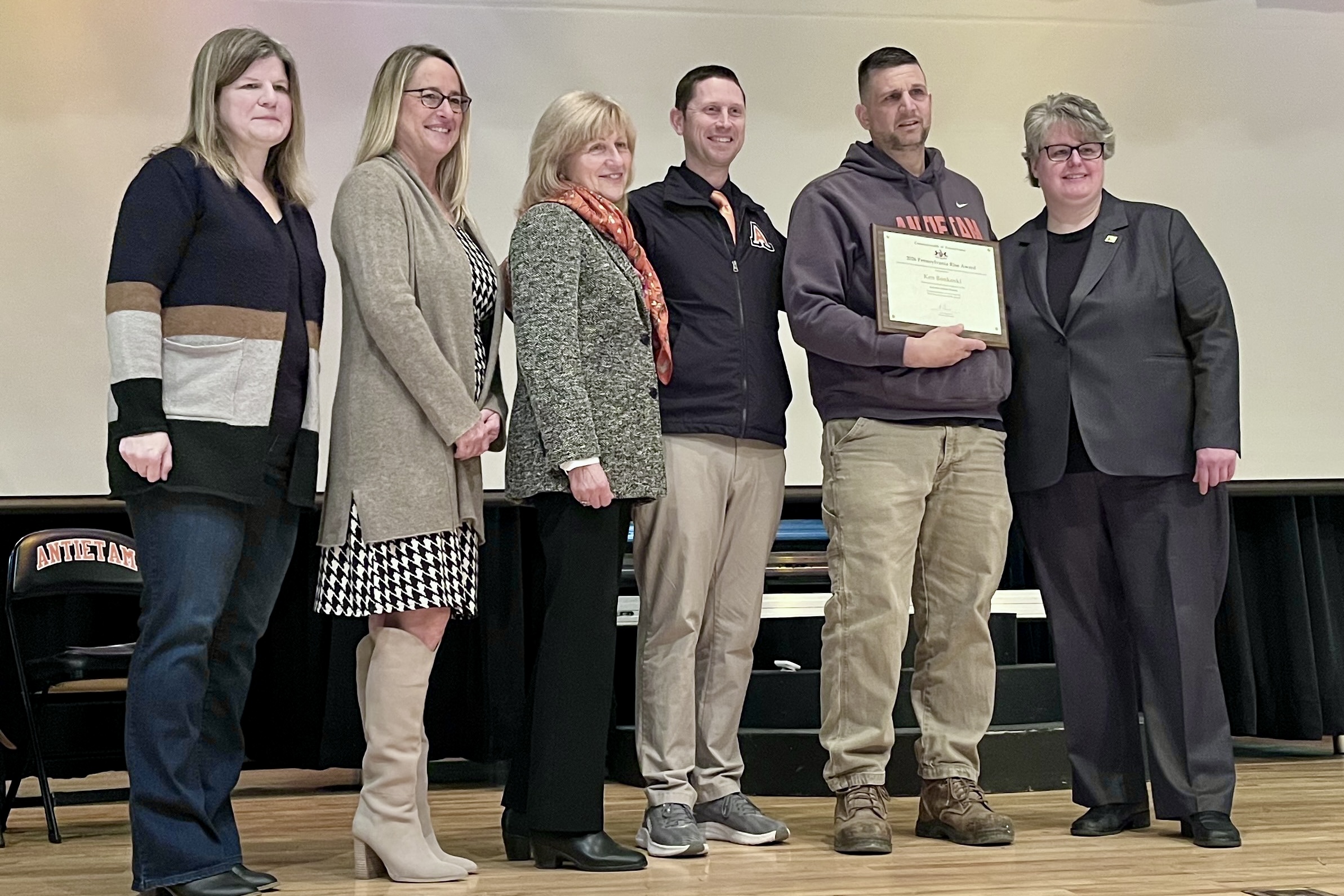 Pennsylvania Secretary of Education Dr. Carrie Rowe honored Ken Bonkoski, the facilities manager at Antietam School District who has guided the district’s recovery and rebuilding project after a flood devastated one of its school buildings in 2023, as a 2026 Pennsylvania Recognizing Inspiring School Employees (RISE) Award recipient.