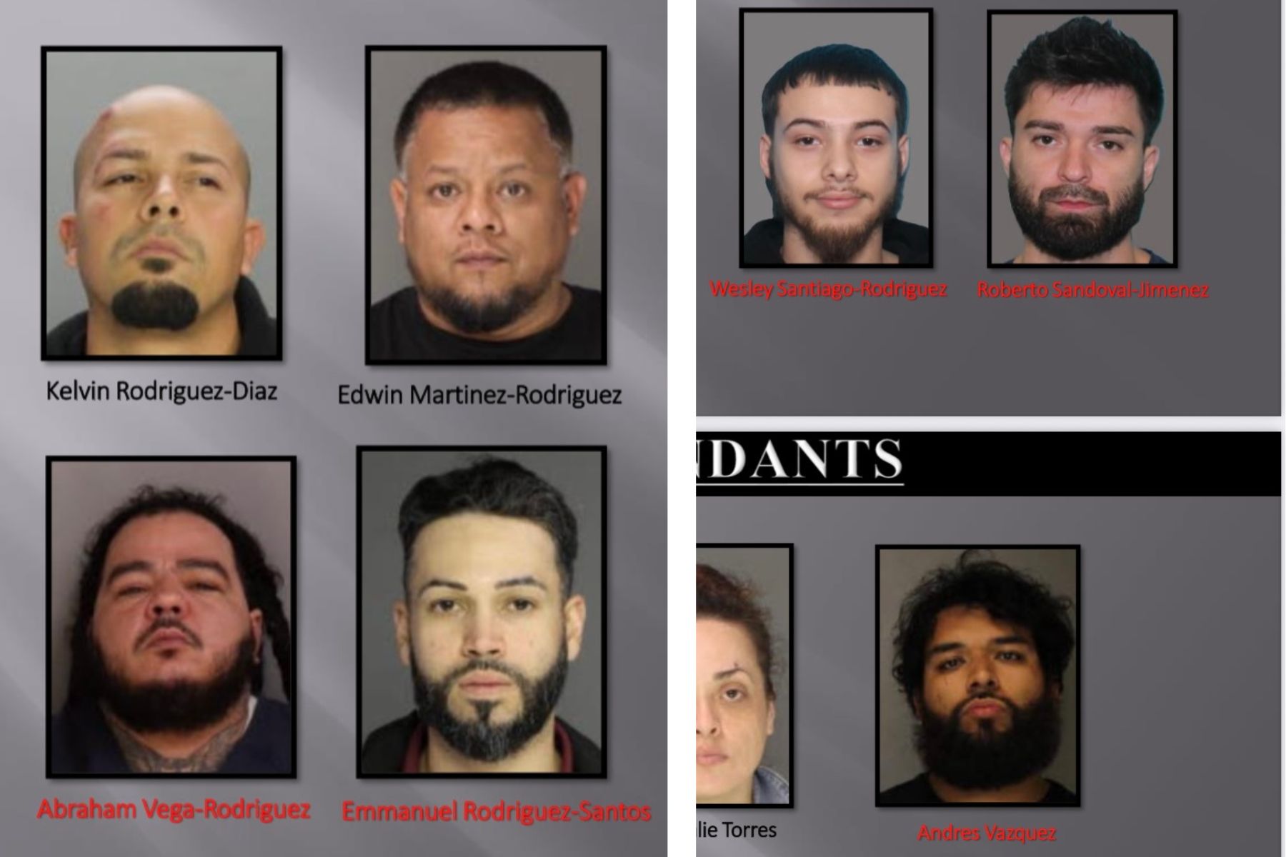 Five defendants remain at large: Wesley Santiago, 25, Reading, Emmanuel Rodriguez-Santos, 39, Reading, Abraham Vega-Rodriguez, 40, Reading, Andres Vazquez, 28, Reading, Roberto Sandoval Jimenez, 33, Reading