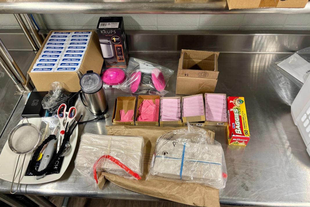 Authorities reported finding two kilograms of fentanyl, digital scales, packaging materials, and other drug paraphernalia. Investigators estimate the drugs carry a street value of about $500,000 and could potentially be broken down into 100,000 individual doses for sale.