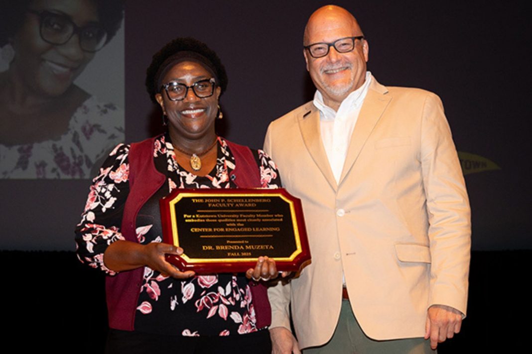 Dr. Brenda Muzeta, associate professor of secondary education, was awarded Kutztown University’s 2025 John P. Schellenberg Award for Excellence in Teaching and Learning. The award was presented during the university’s Faculty and Staff Convocation and Celebration Friday, Aug. 22.