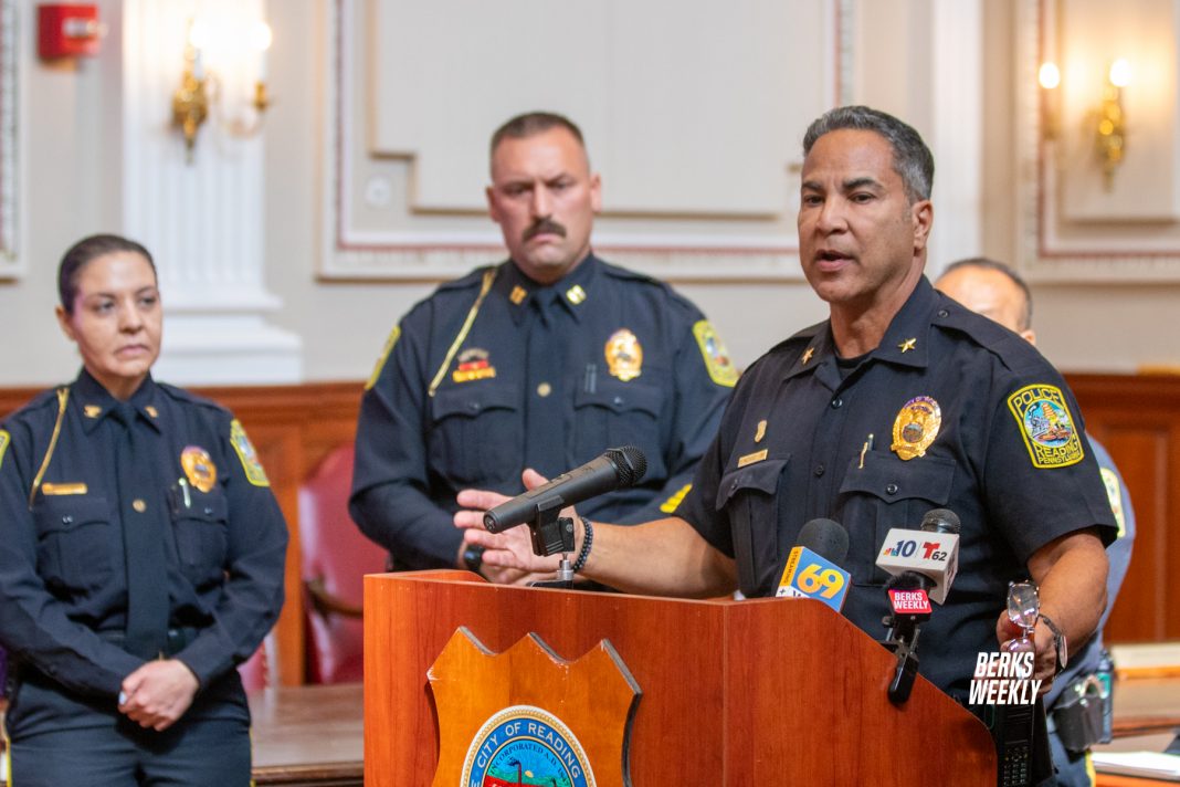 “Today we announce the departure of Chief Elias Vazquez, who has made the decision to step away from his role as Chief of Police for personal reasons,” Moran said during a press conference at City Hall. “While I’m deeply saddened to see him move on, I want to take this moment to publicly commend him for his tremendous service he has given to the city of Reading.”