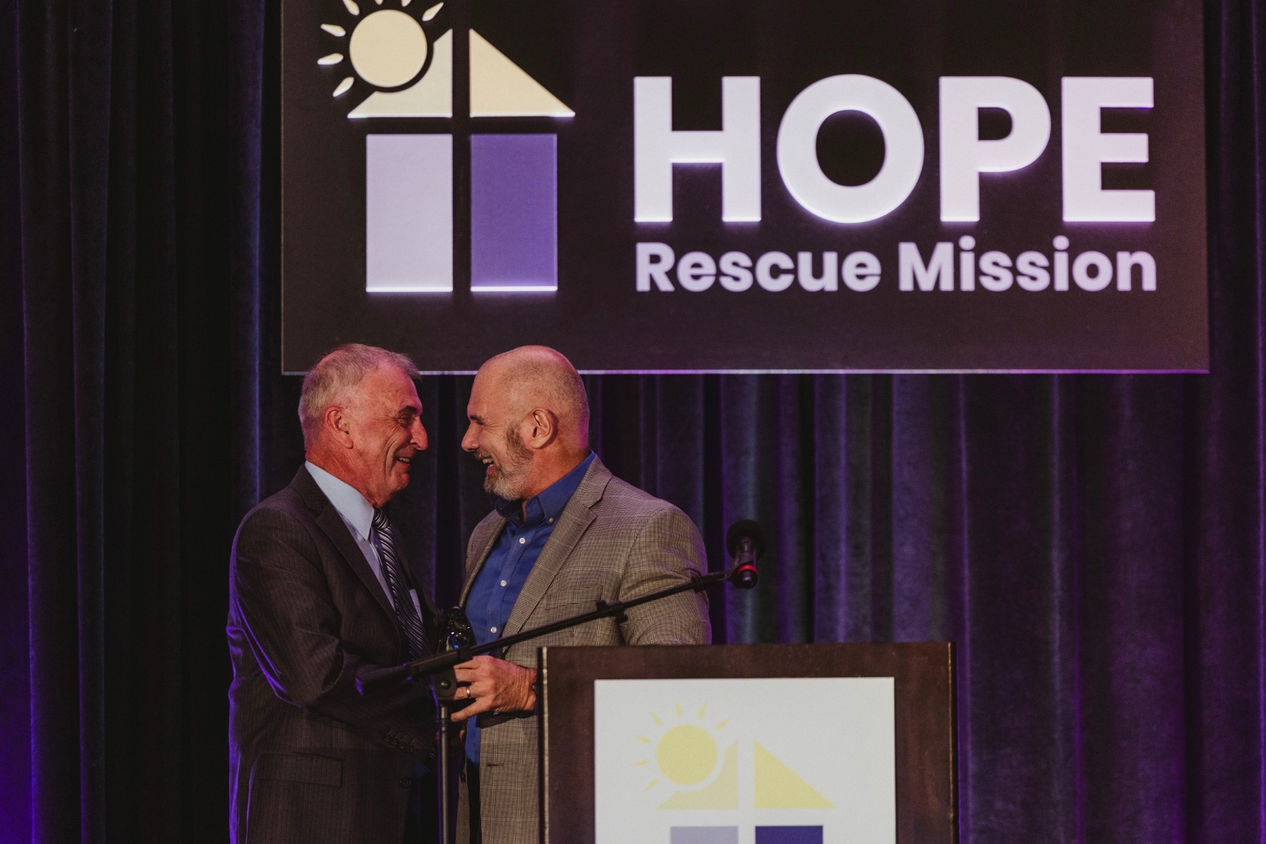 The Gala featured a reception, dinner, raffles, and heartfelt testimonies from residents who shared how Hope Rescue Mission has helped them rebuild their lives. A highlight of the night was the presentation of the David H. Roland Award, which was given to Jim Adams of Adams and Associates for his steadfast commitment to the community and support of Hope Rescue Mission.