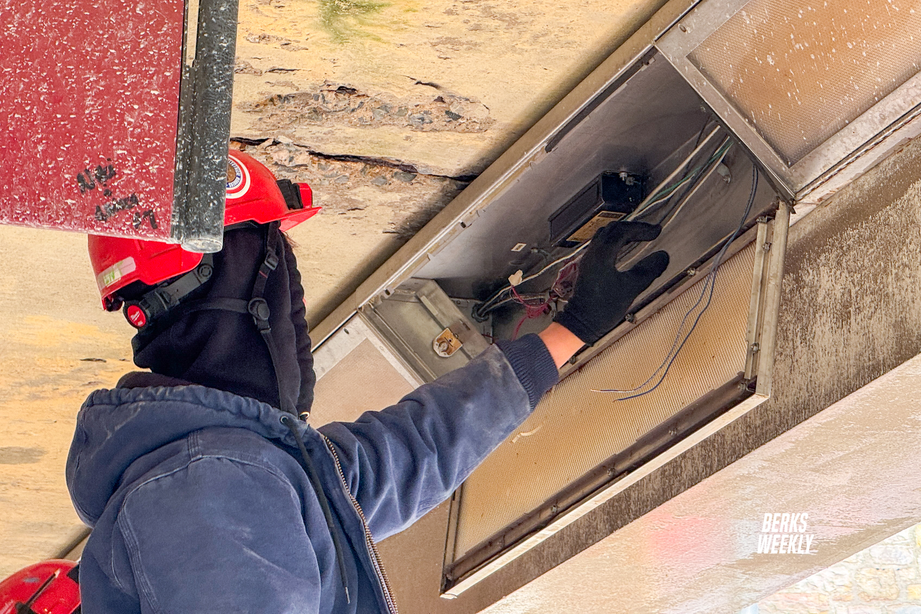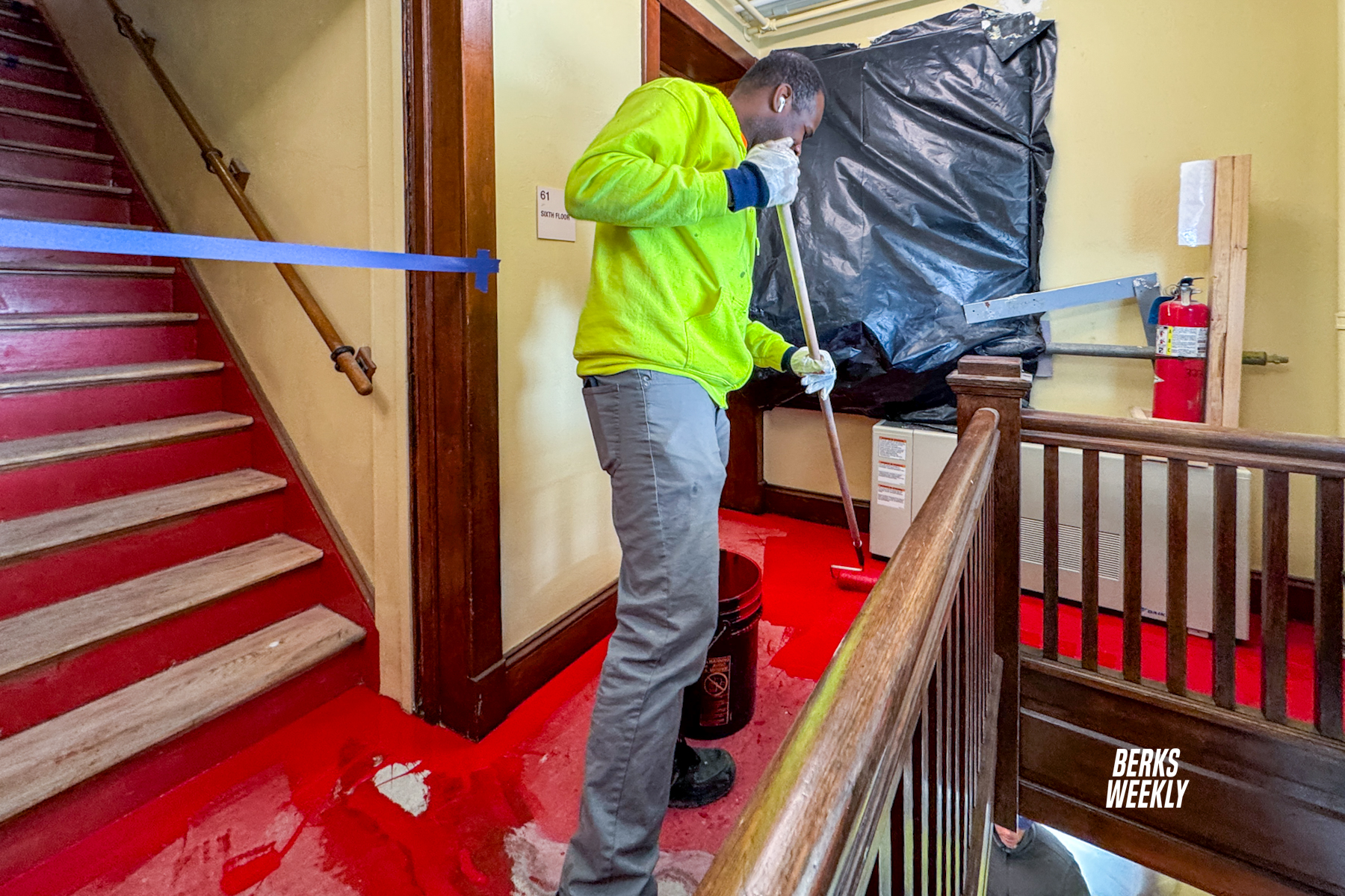 Much of the work inside has focused on modernizing systems and improving safety. Crews are currently installing epoxy flooring, replacing carpeted areas on several levels. “The Pagoda Foundation, in efforts to try to make it more of an easy care facility, elected to pay for a change order to have it epoxied instead of having carpet laid,” Anspach explained.
