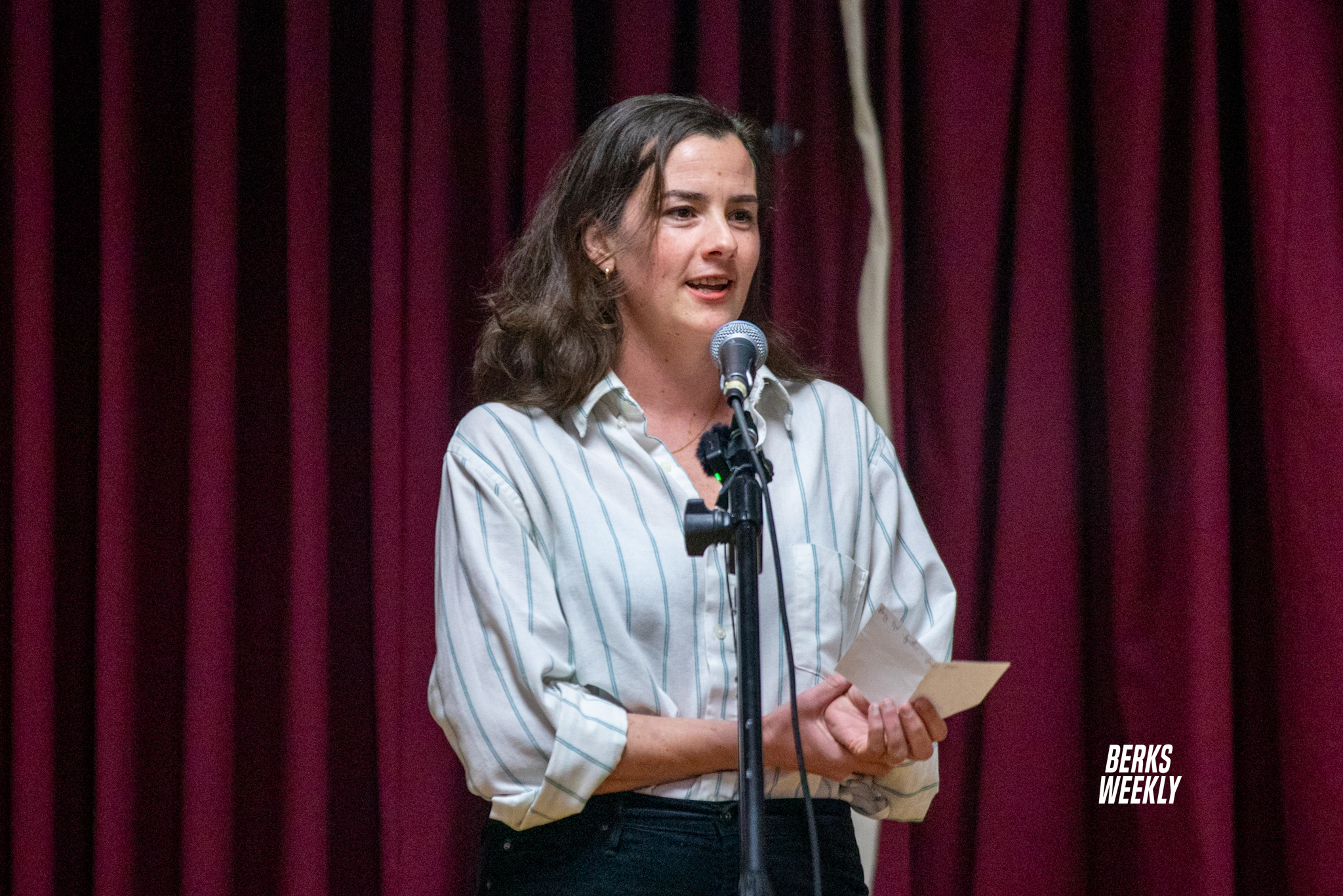 Sue Leiby, a member of Ice Out of Upper Bern, opened the event by welcoming attendees and outlining the purpose of the gathering. “Our group, Ice Out of Upper Bern, is dedicated to the peaceful, the local, and the nonpartisan opposition to the ICE facility that they want to put in out on Mountain Road,” Leiby said.