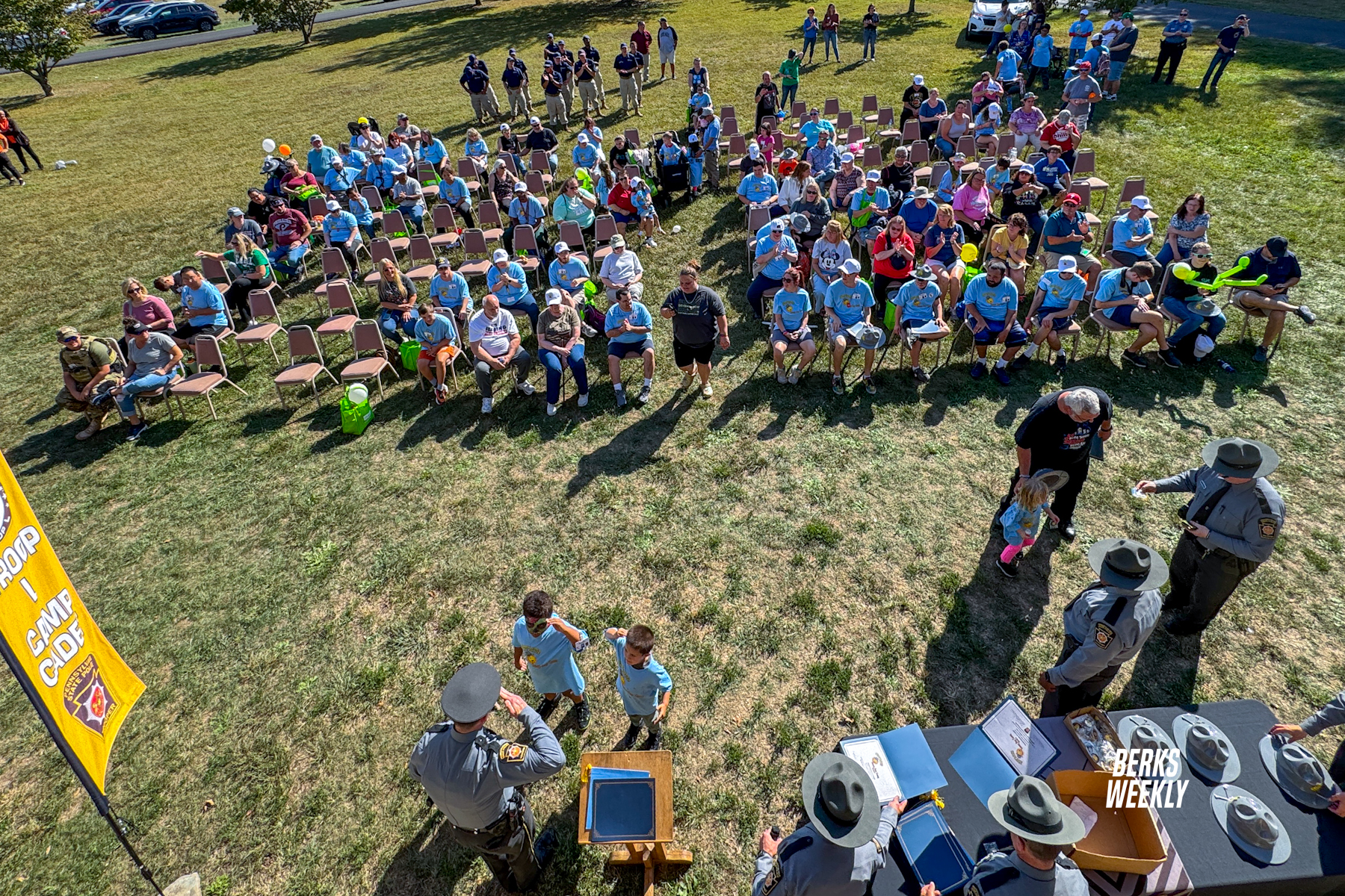 Pennsylvania State Police Troop L once again hosted their annual Sunny Day Camp on Saturday at Camp Manatawny, bringing together children and adults with special needs from Berks, Lebanon, and Schuylkill counties for a day of activities with first responders.